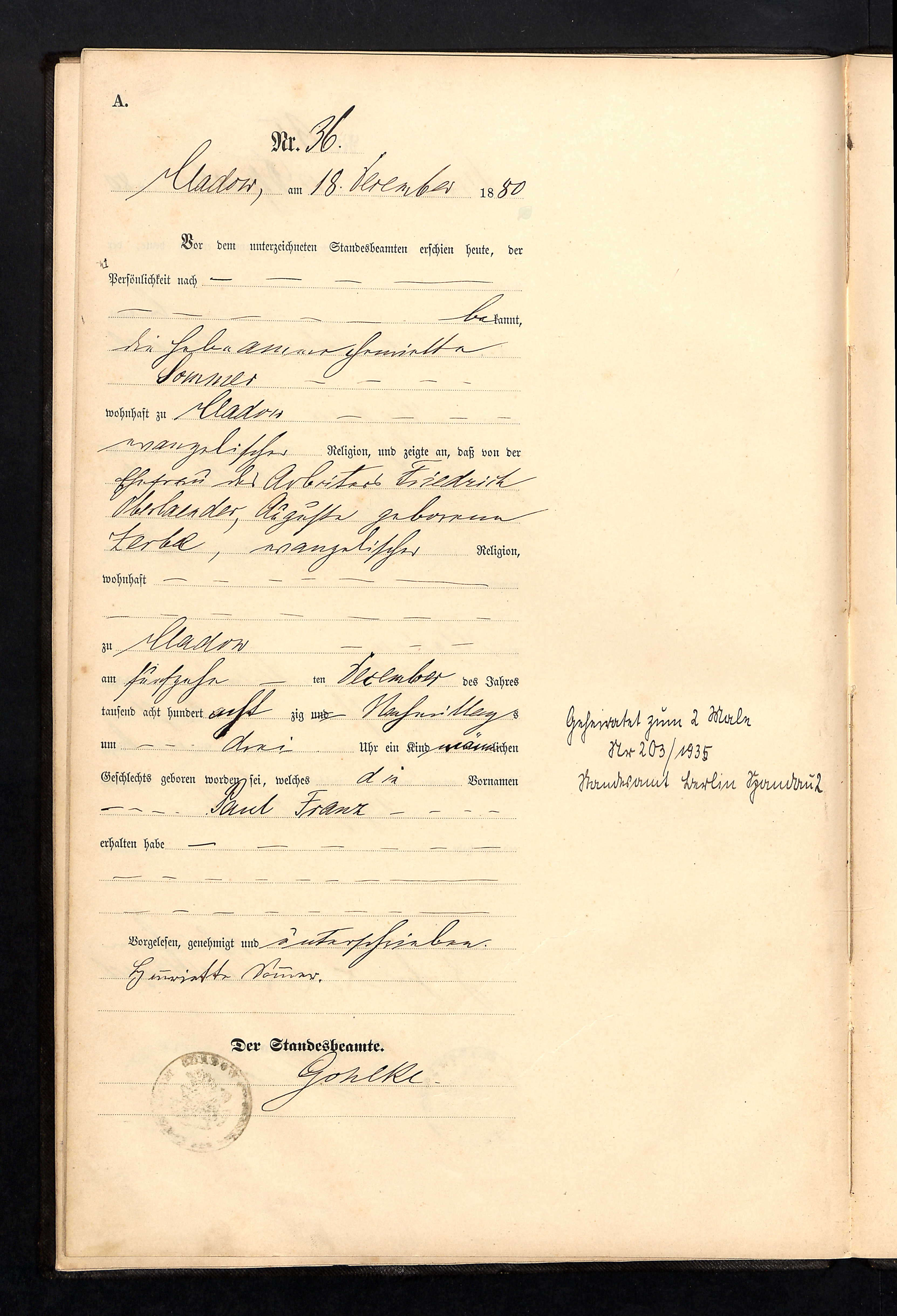 Oberländer Paul Franz Geburt
