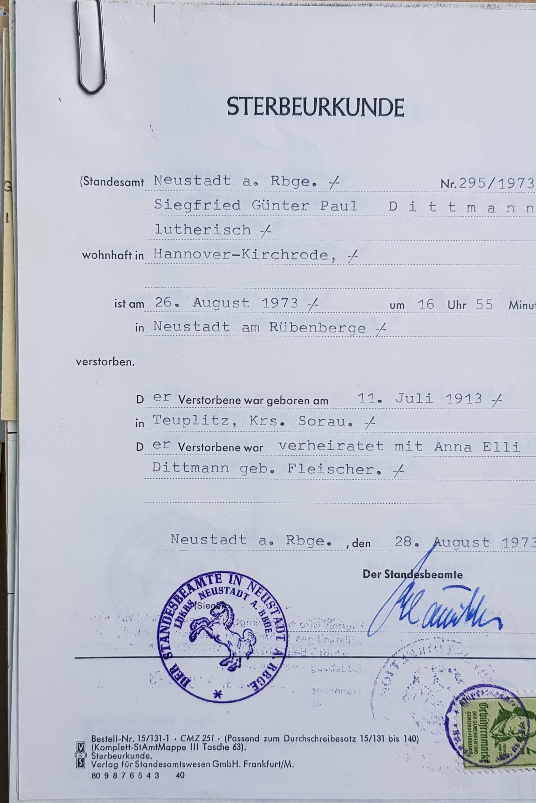 Dittmann Siegfried Todesurkunde_1