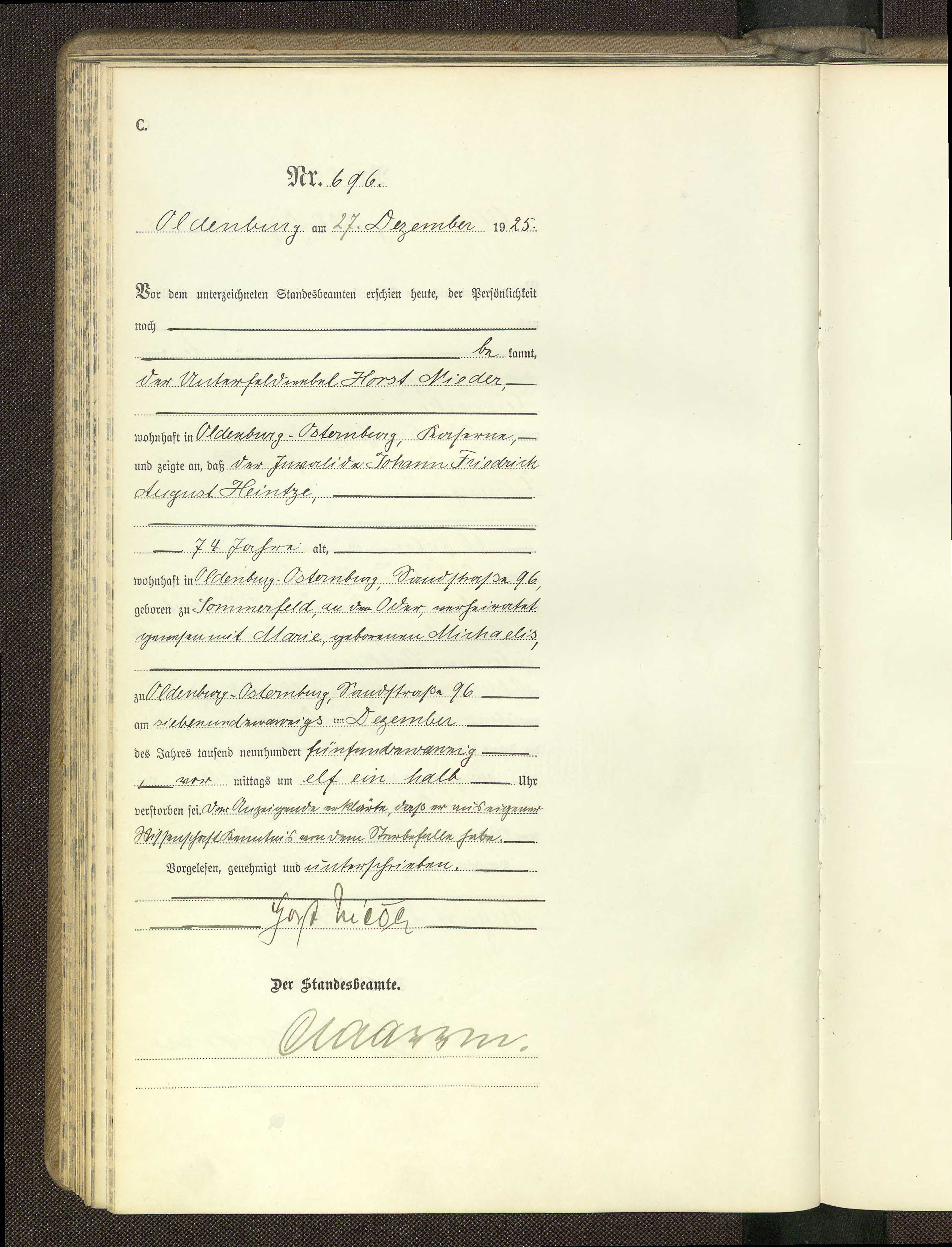 Heintze Johann Friedrich_Tod